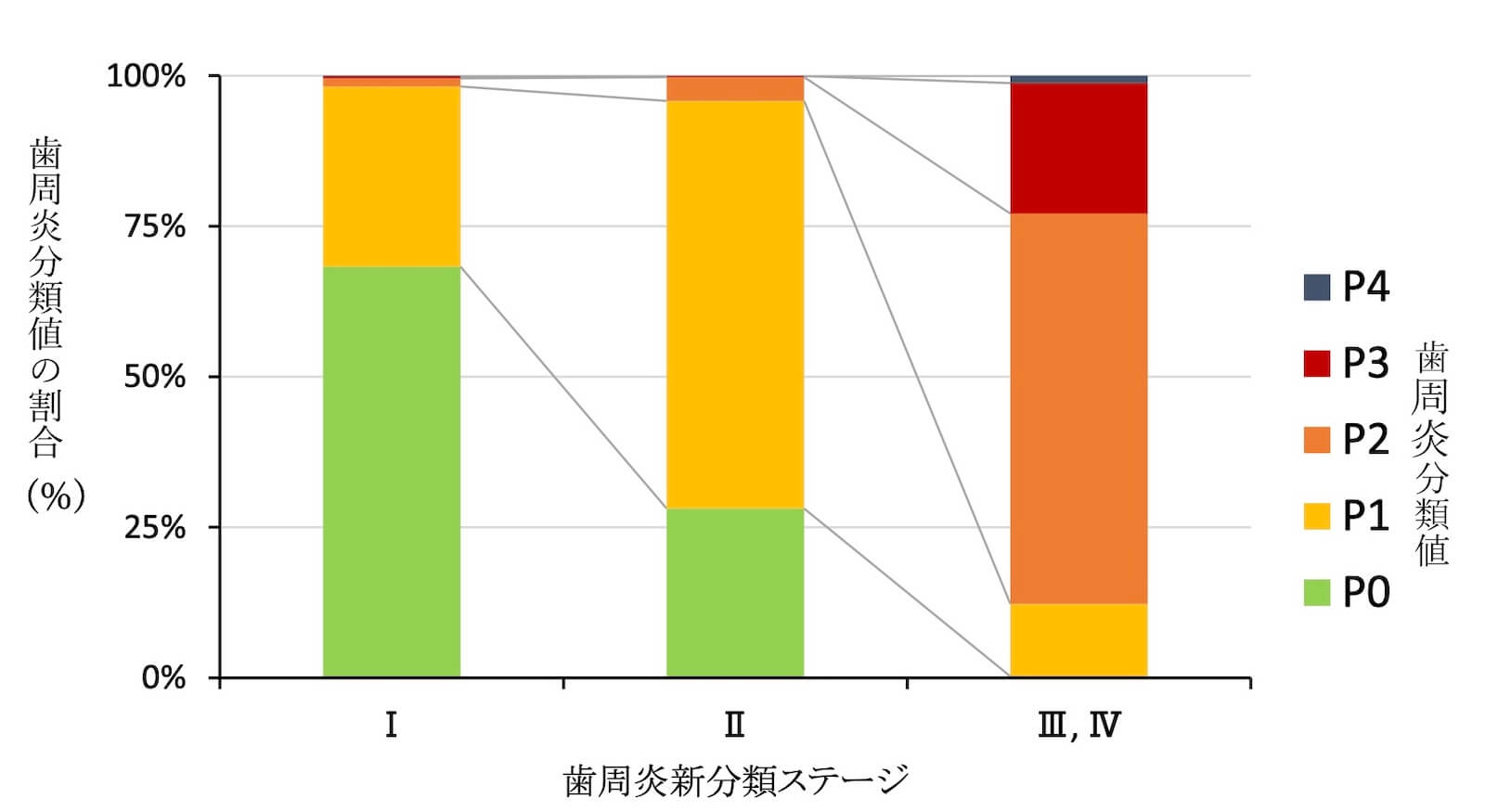 Differences were observed between the classification values of the Periodontal Disease Classification (Japanese Dental Association, 2007) and the New Periodontal Disease Classification (AAP/EFP, 2018).