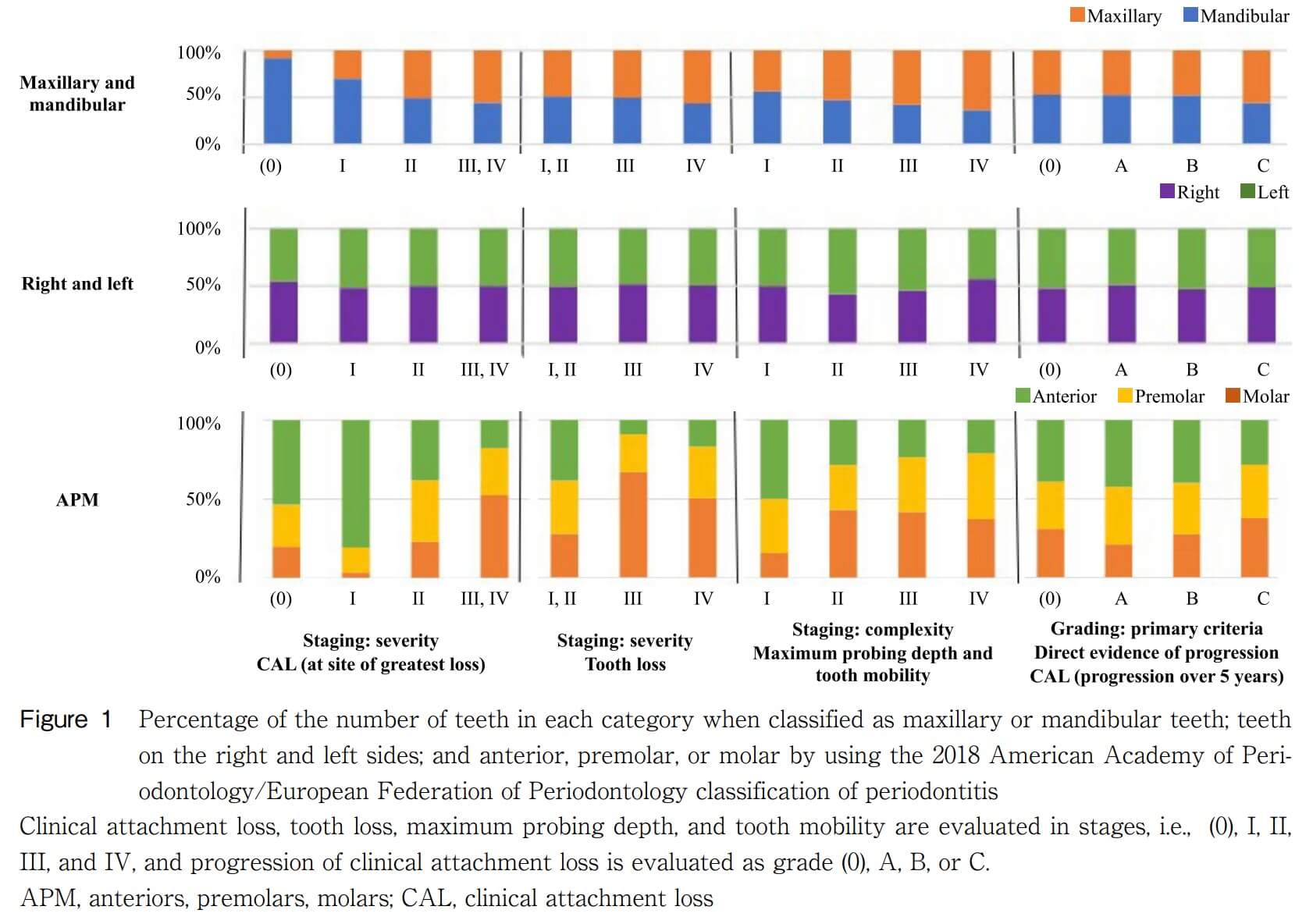 “The stages and grades of the new periodontitis classification differ depending on the type of tooth”